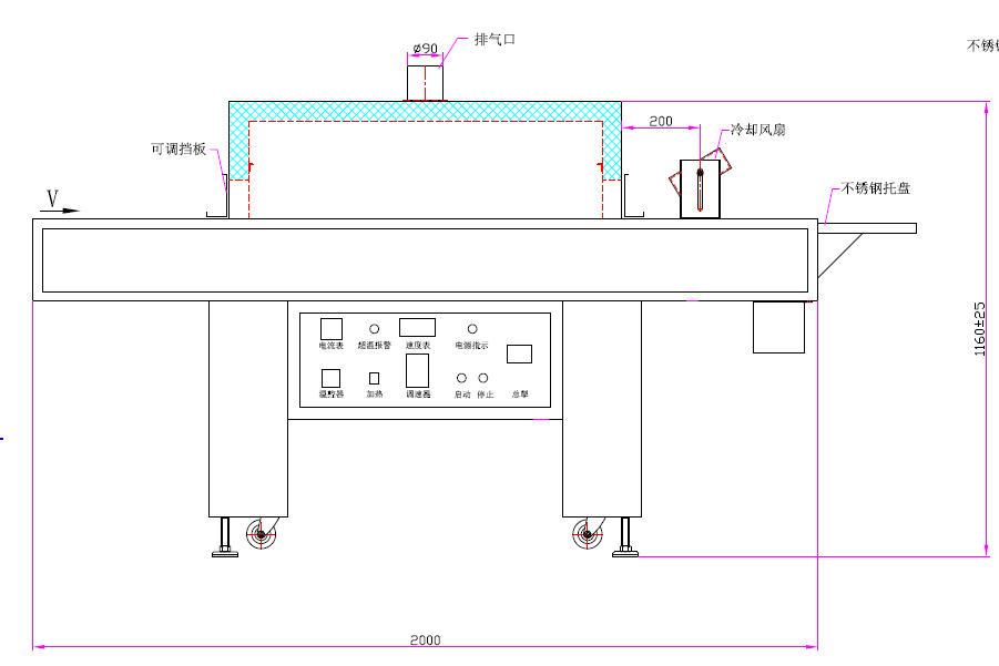 | 3、采用无级调速 | 4、输送材料:不锈钢网带 |
